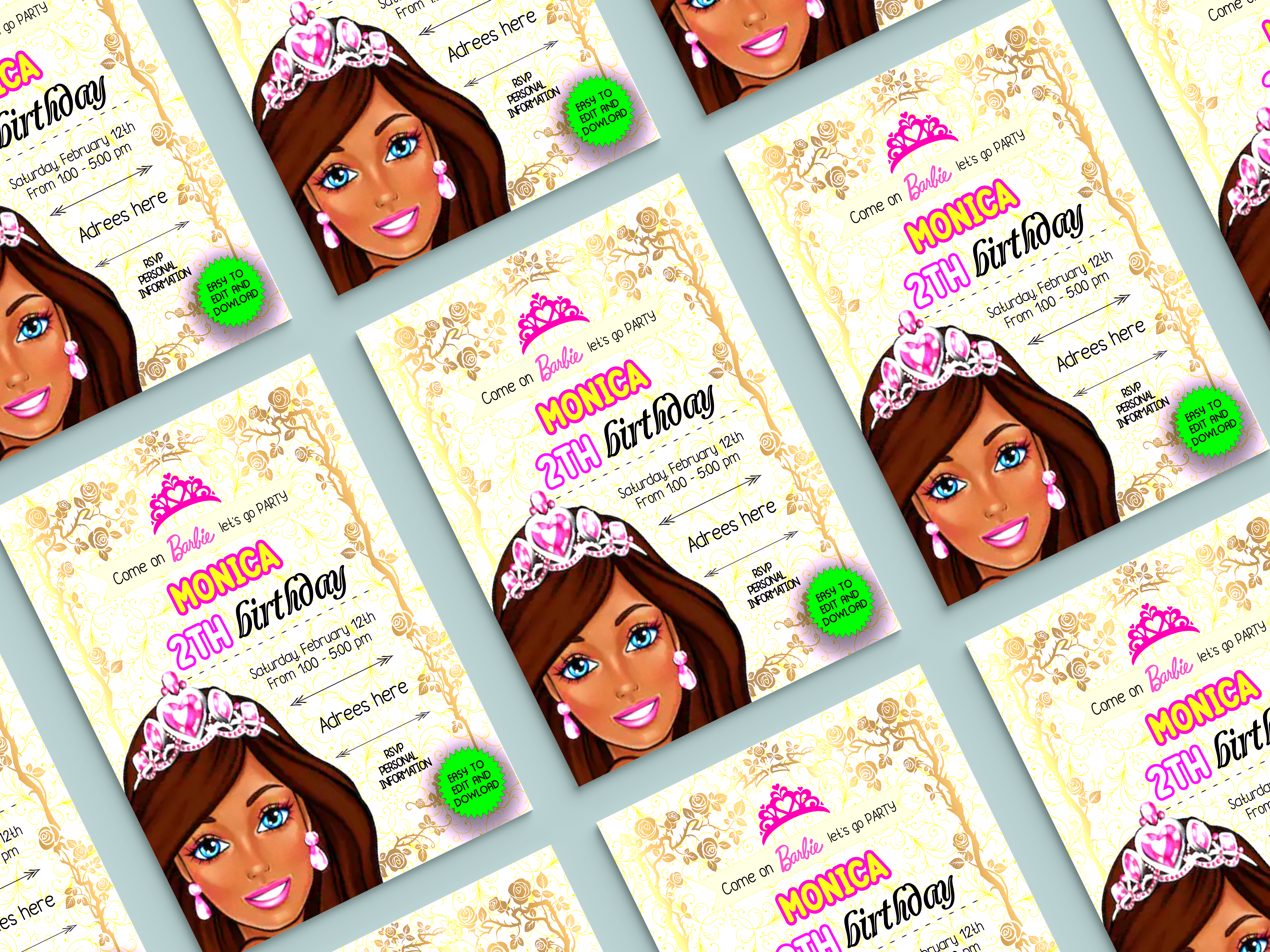 Below you can see various digital invitations created by me. I use Adobe Photoshop and Corjl to create them and Etsy to sell them.